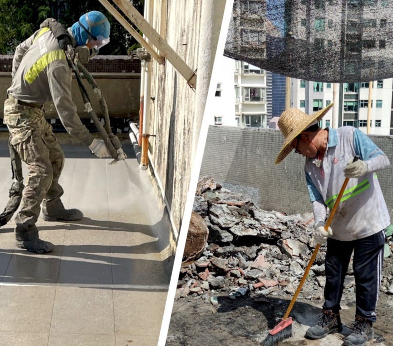 1.拆除天台磁磚:使用專業工具,直到拆到石屎面為止。